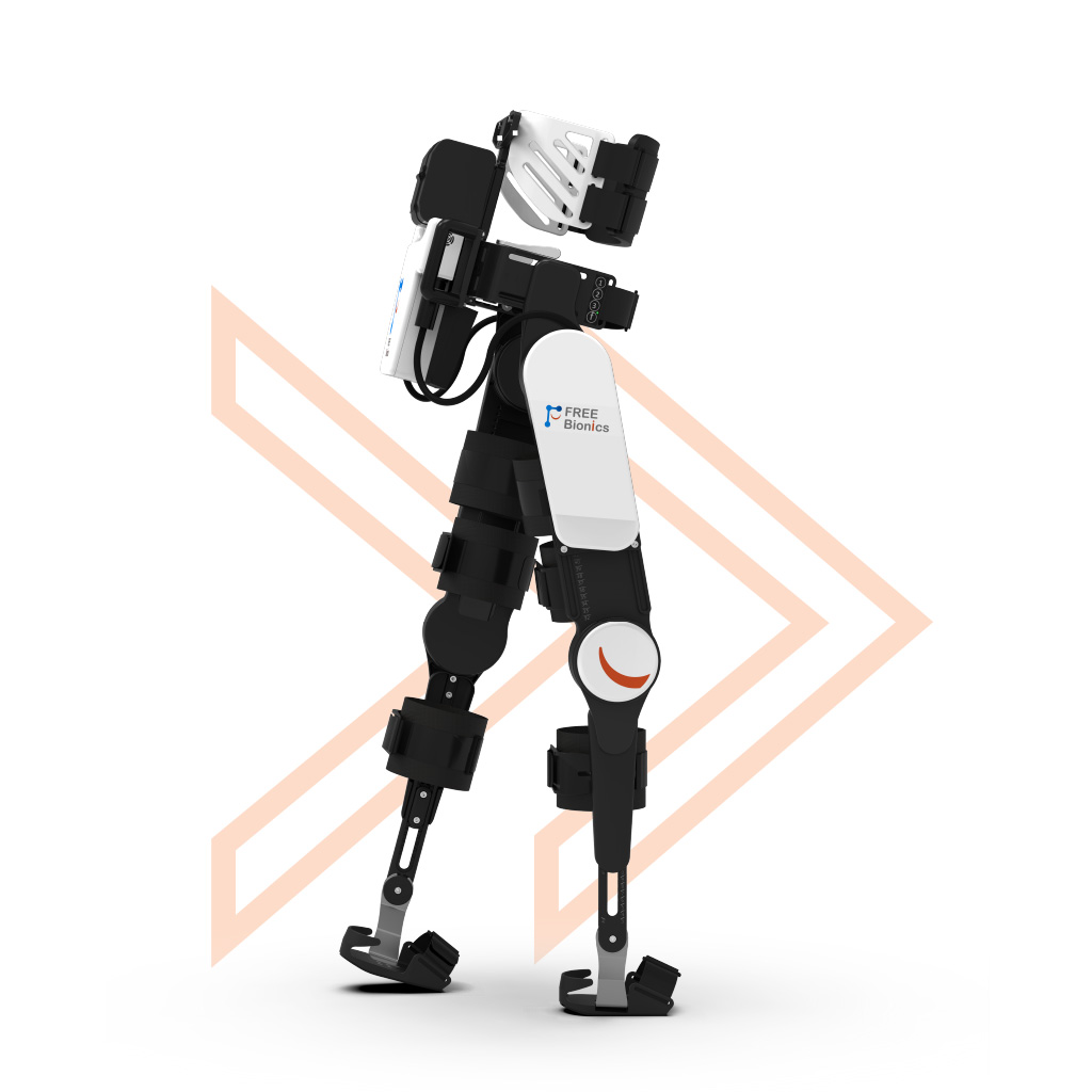 Egzoszkielet kończyn dolnych stosowany do rehabilitacji. Free Walk wspiera chodzenie, umożliwiając przyjęcie stabilniejszej postawy ciała..